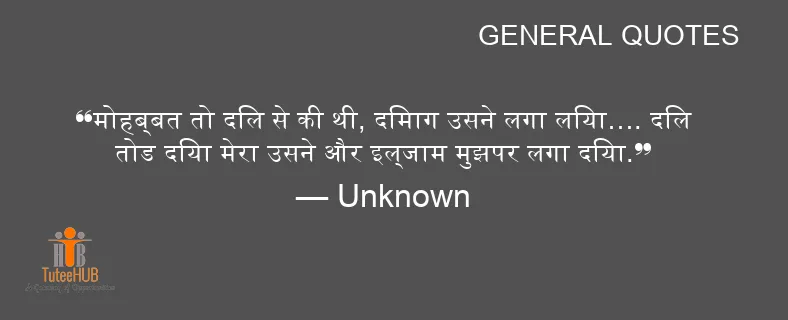 मोहब्बत तो दिल से की थी, दिमाग उसने लगा लिया…. दिल तोड दिया मेरा उसने और इल्जाम मुझपर लगा दिया.