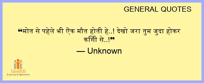 मोत से पहेले भी ऎक मौत होती हे..! देखो जरा तुम जुदा होकर किसी से..!