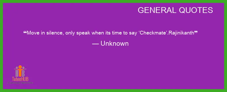 Move in silence, only SPEAK when its TIME to SAY ‘Checkmate’.RAJINIKANTH