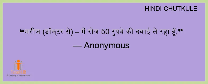 मरीज (डॉक्टर से) – मैं रोज 50 रुपये की दवाई ले रहा हूँ,