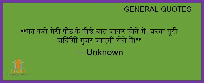 मत करो मेरी पीठ के पीछे बात जाकर कोने में। वरना पूरी जिंदिगी गुज़र जाएगी रोने में।