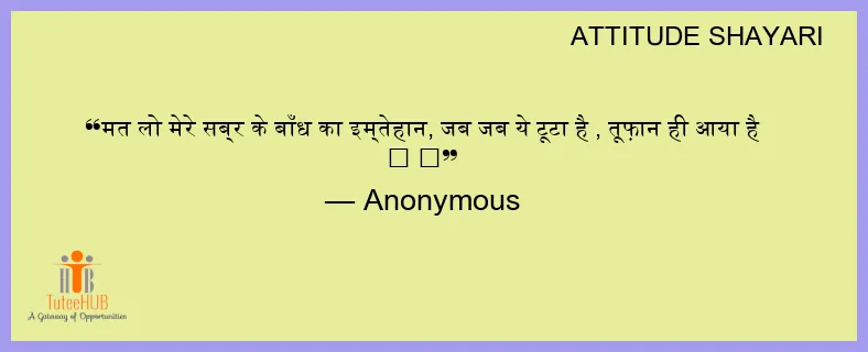 मत लो मेरे सब्र के बाँध का इम्तेहान, जब जब ये टूटा है , तूफ़ान ही आया है 😏 😎