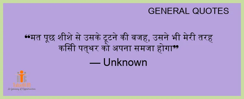मत पूछ शीशे से उसके टूटने की वजह, उसने भी मेरी तरह किसी पत्थर को अपना समजा होगा