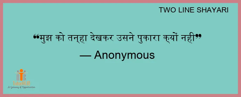 मुझ को तन्हा देखकर उसने पुकारा क्यों नही