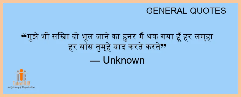 मुझे भी सिखा दो भूल जाने का हुनर मैं थक गया हूँ हर लम्हा हर सांस तुम्हे याद करते करते