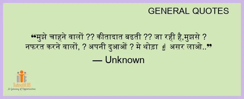 मुझे चाहने वालों ?? कीतादात बढती ?? जा रही है,मुझसे ? नफरत करने वालों, ? अपनी दुआओं ? मे थोड़ा ☝ असर लाओ..