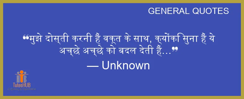 मुझे दोस्ती करनी हैं वक़्त के साथ, क्योंकि सुना हैं ये अच्छे अच्छे को बदल देती हैं…
