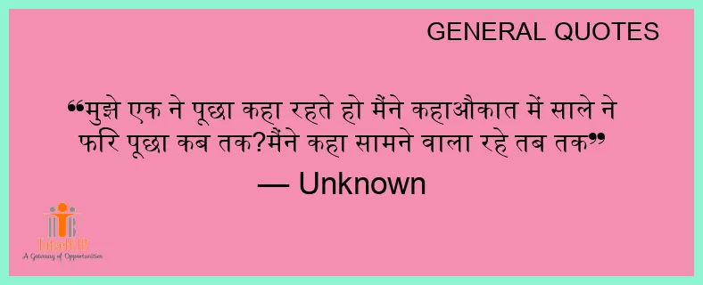 मुझे एक ने पूछा कहा रहते हो मैंने कहाऔकात में साले ने फिर पूछा कब तक?मैंने कहा सामने वाला रहे तब तक