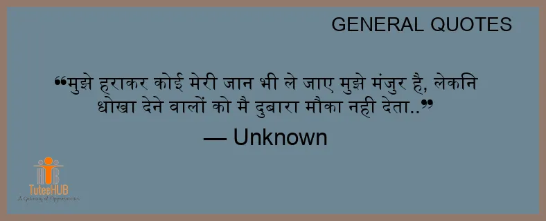 मुझे हराकर कोई मेरी जान भी ले जाए मुझे मंजुर है, लेकिन धोखा देने वालों को मै दुबारा मौका नही देता..