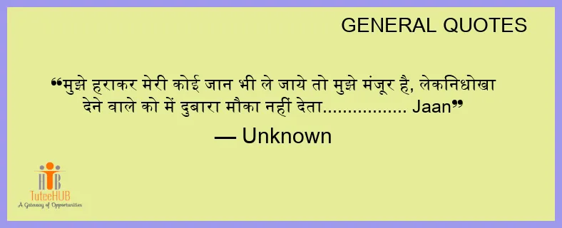 मुझे हराकर मेरी कोई जान भी ले जाये तो मुझे मंजूर है, लेकिनधोखा देने वाले को में दुबारा मौका नहीं देता................. Jaan