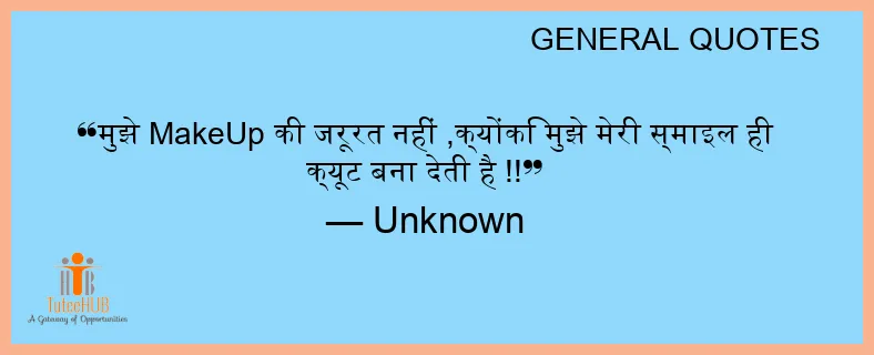मुझे MakeUp की जरूरत नहीं ,क्योंकि मुझे मेरी स्माइल ही क्यूट बना देती है !!