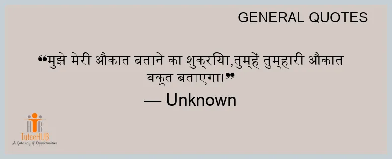 मुझे मेरी औकात बताने का शुक्रिया,तुम्हें तुम्हारी औकात वक़्त बताएगा।