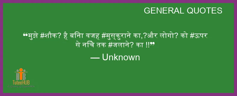 मुझे #शौक? है बिना वजह #मुस्कुराने का,?और लोगो? को #ऊपर से निचे तक #जलाने? का !!