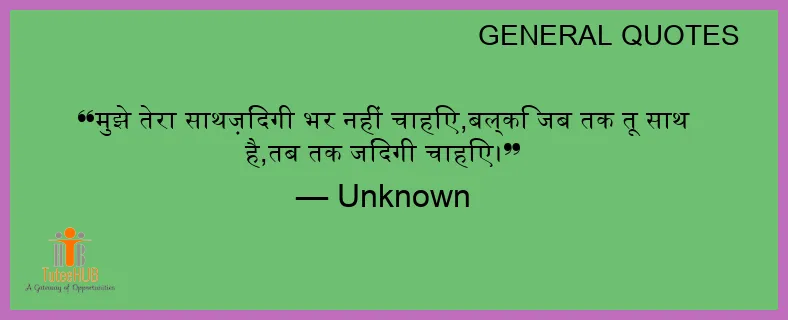 मुझे तेरा साथज़िंदगी भर नहीं चाहिए,बल्कि जब तक तू साथ है,तब तक जिंदगी चाहिए।