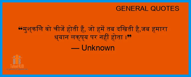 मुश्किले वो चीजें होती हैं, जो हमें तब दिखती है,जब हमारा ध्यान लक्ष्य पर नहीं होता ।