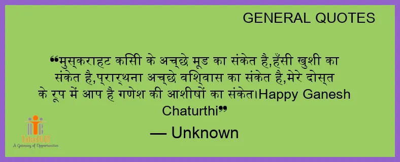मुस्कराहट किसी के अच्छे मूड का संकेत है,हँसी खुशी का संकेत है,प्रार्थना अच्छे विश्वास का संकेत है,मेरे दोस्त के रूप में आप है गणेश की आशीषों का संकेत।Happy GANESH Chaturthi