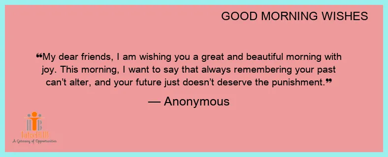 My dear friends, I am wishing you a great and beautiful morning with joy. This morning, I want to say that always remembering your past can’t alter, and your future just doesn’t deserve the punishment.