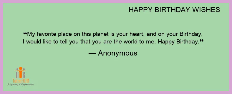 My favorite place on this planet is your heart, and on your Birthday, I would like to tell you that you are the world to me. Happy Birthday.