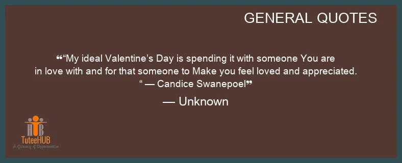 “My ideal Valentine’s Day is SPENDING it with someone You are in LOVE with and for that someone to MAKE you FEEL loved and appreciated. “ — Candice Swanepoel