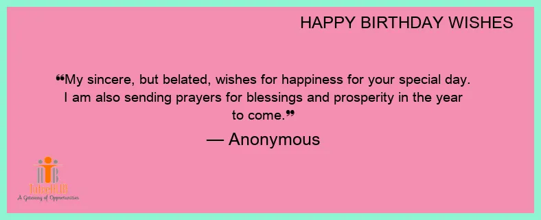 My sincere, but belated, wishes for happiness for your special day. I am also sending prayers for blessings and prosperity in the year to come.
