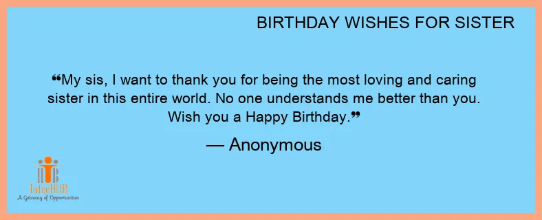 My sis, I want to thank you for being the most loving and caring sister in this entire world. No one understands me better than you. Wish you a Happy Birthday.