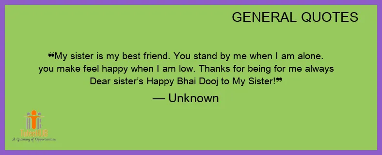 My sister is my BEST FRIEND. You stand by me when I am alone. you make feel happy when I am LOW. Thanks for being for me always DEAR sister’s Happy Bhai Dooj to My Sister!