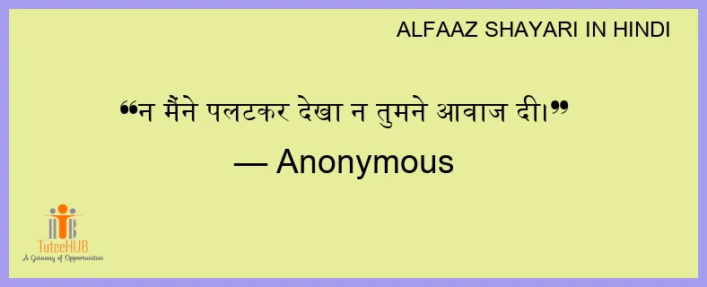न मैंने पलटकर देखा न तुमने आवाज दी।