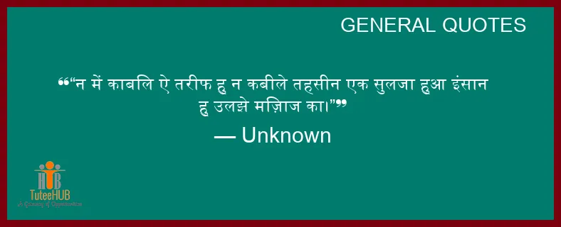 “न में काबिल ऐ तरीफ हु न कबीले तहसीन एक सुलजा हुआ इंसान हु उलझे मिज़ाज का।”
