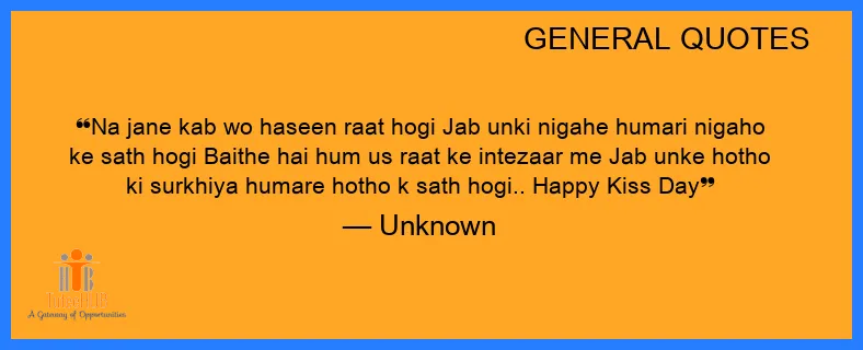 Na jane kab wo haseen raat hogi Jab unki nigahe humari nigaho ke sath hogi BAITHE hai HUM US raat ke intezaar me Jab UNKE hotho ki surkhiya humare hotho K sath hogi.. Happy Kiss Day