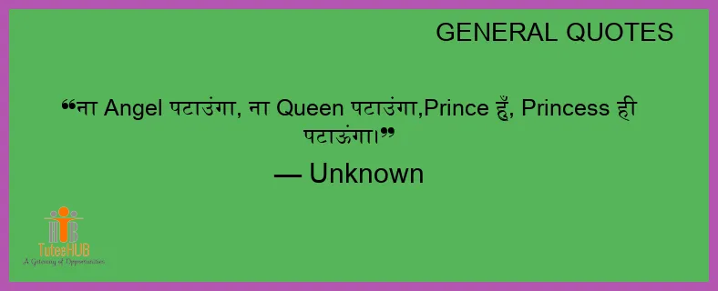 ना ANGEL पटाउंगा, ना Queen पटाउंगा,Prince हुँ, PRINCESS ही पटाऊंगा।