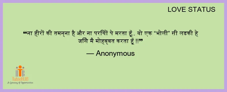 ना हीरों की तमन्ना है और ना परियों पे मरता हूँ.. वो एक “भोली” सी लडकी हे जिसे मैं मोहब्बत करता हूँ !!