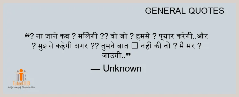 ? ना जाने कब ? मिलेगी ?? वो जो ? हमसे ? प्यार करेगी..और ? मुझसे कहेगी अगर ?? तुमने बात ❌ नहीं की तो ? मैं मर ? जाउंगी..