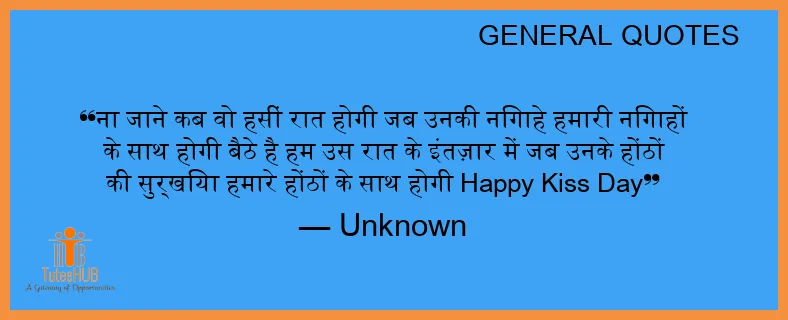 ना जाने कब वो हसीं रात होगी जब उनकी निगाहे हमारी निगाहों के साथ होगी बैठे है हम उस रात के इंतज़ार में जब उनके होंठों की सुर्खिया हमारे होंठों के साथ होगी Happy Kiss Day