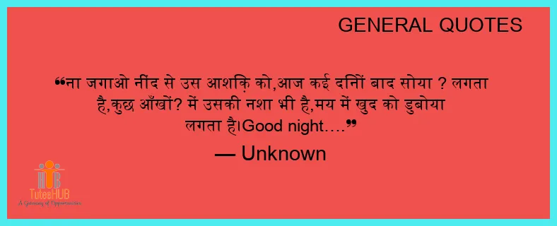 ना जगाओ नींद से उस आशिक़ को,आज कई दिनों बाद सोया ? लगता है,कुछ आँखों? में उसकी नशा भी है,मय में खुद को डुबोया लगता है।Good night….