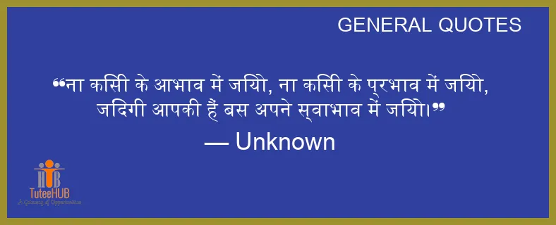 ना किसी के आभाव में जियो, ना किसी के प्रभाव में जियो, जिंदगी आपकी हैं बस अपने स्वाभाव में जियो।