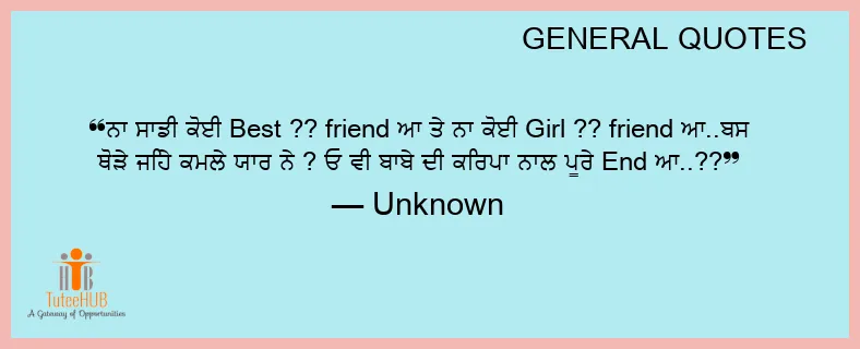 ਨਾ ਸਾਡੀ ਕੋੲੀ BEST ?? friend ਆ ਤੇ ਨਾ ਕੋਈ GIRL ?? friend ਆ..ਬਸ ਥੋੜੇ ਜਿਹੇ ਕਮਲੇ ਯਾਰ ਨੇ ? ਓ ਵੀ ਬਾਬੇ ਦੀ ਕਿਰਪਾ ਨਾਲ ਪੂਰੇ End ਆ..??