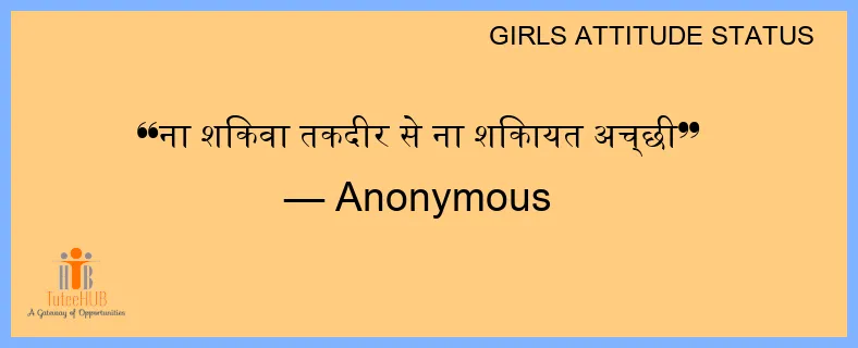 ना शिकवा तकदीर से ना शिकायत अच्छी