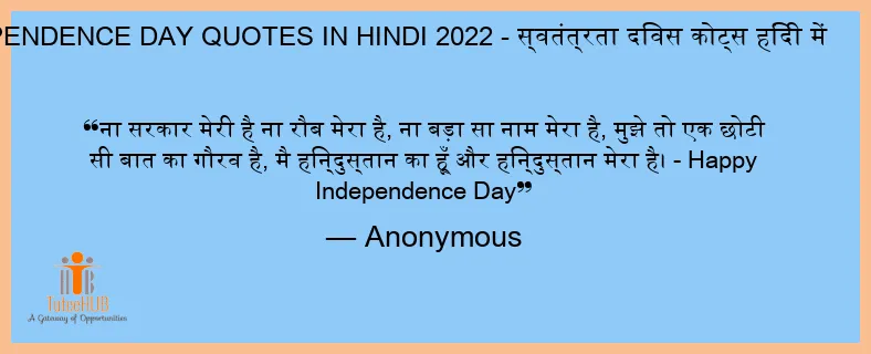 ना सरकार मेरी है ना रौब मेरा है, ना बड़ा सा नाम मेरा है, मुझे तो एक छोटी सी बात का गौरव है, मै हिन्दुस्तान का हूँ और हिन्दुस्तान मेरा है। - Happy Independence Day