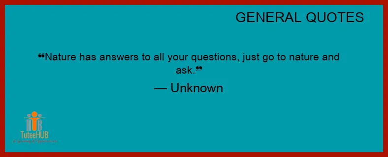 NATURE has ANSWERS to all your QUESTIONS, just GO to nature and ASK.