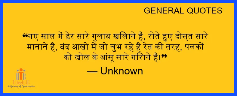 नए साल में ढेर सारे गुलाब खिलाने हैं, रोते हुए दोस्त सारे मानाने हैं, बंद आखो में जो चुभ रहे हैं रेत की तरह, पलकों को खोल के आंसू सारे गिराने हैं।