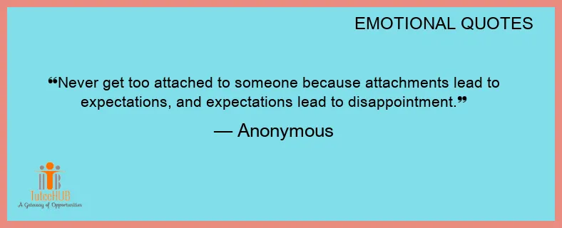 Never get too attached to someone because attachments lead to expectations, and expectations lead to disappointment.
