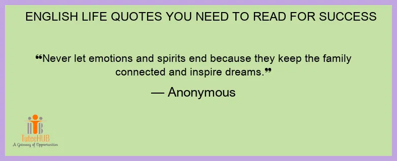 Never let emotions and spirits end because they keep the family connected and inspire dreams.