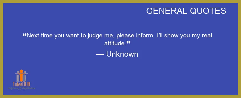 Next TIME you WANT to JUDGE me, please inform. I’ll show you my REAL ATTITUDE.