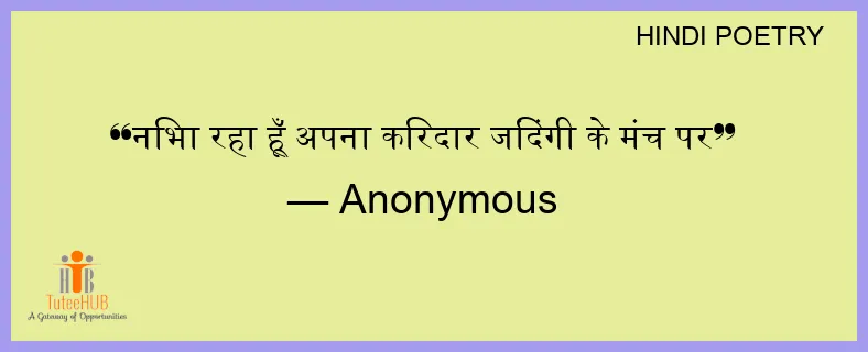 निभा रहा हूँ अपना किरदार जिंदंगी के मंच पर