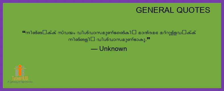 നിങ്ങൾക്ക് സ്വയം വിശ്വാസമുണ്ടെങ്കിൽ മാത്രമേ മറ്റുള്ളവർക്ക് നിങ്ങളിൽ വിശ്വാസമുണ്ടാകൂ.