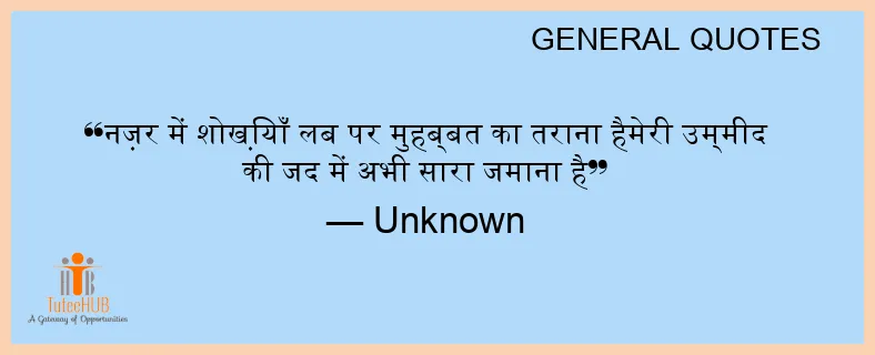 नज़र में शोखि़याँ लब पर मुहब्बत का तराना हैमेरी उम्मीद की जद में अभी सारा जमाना है