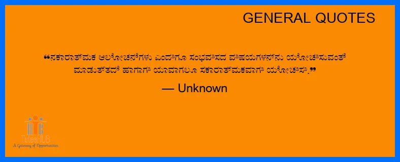 ನಕಾರಾತ್ಮಕ ಆಲೋಚನೆಗಳು ಎಂದಿಗೂ ಸಂಭವಿಸದ ವಿಷಯಗಳನ್ನು ಯೋಚಿಸುವಂತೆ ಮಾಡುತ್ತದೆ ಹಾಗಾಗಿ ಯಾವಾಗಲೂ ಸಕಾರಾತ್ಮಕವಾಗಿ ಯೋಚಿಸಿ.
