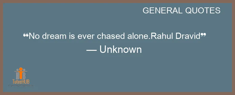 No DREAM is EVER CHASED alone.Rahul Dravid