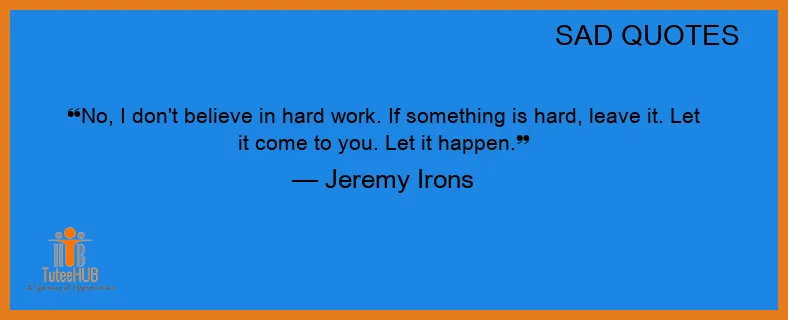 No, I don't believe in HARD work. If SOMETHING is hard, LEAVE it. Let it COME to you. Let it happen.