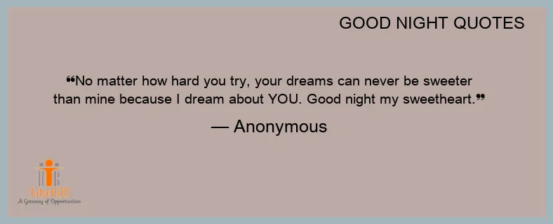 No matter how hard you try, your dreams can never be sweeter than mine because I dream about YOU. Good night my sweetheart.